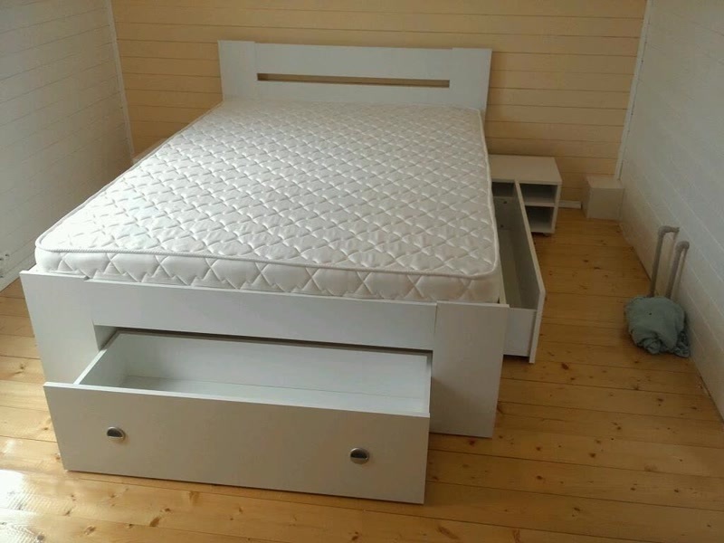 - Отличная кровать, красивая, проста в сборке, удобные глубокие ящики и как приятный бонус - тумбы на колесиках (можно поставить рядом с кроватью, можно убрать в кровать)Покупали с ортопедическим основанием, всем довольны. Доставка в четко согласованный день.